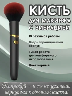 Кисть для макияжа большая, черная, с вибрацией