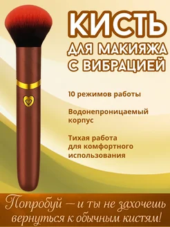 Кисть для макияжа большая, золотая, с вибрацией