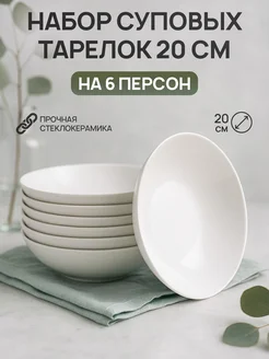Тарелки для супа набор 6 шт белые глубокие стеклокерамика