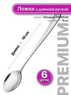 Ложки чайные с длинной ручкой Мондиал кофейные 19 см 6 шт