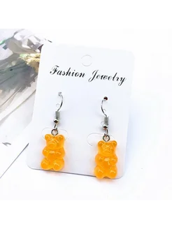 Сережки Мишки мармеладные розовые перламутровые (2шт)