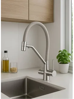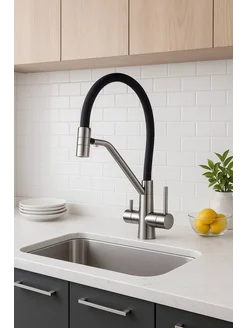 Смеситель для кухни графит оружейная сталь матовый с изливом