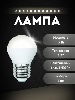 Лампа светодиодная LED-G45-5W 4000K 2шт