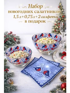 Салатник новогодний 2штуки Снегири Зимние забавы