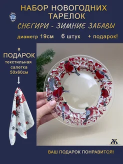 Набор тарелок 6шт Снегири Зимние забавы + подарок