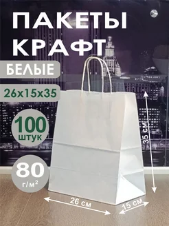 Бумажный пакет белый с ручками 260*150*350 100 шт