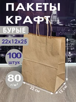 Бумажный пакет крафт с ручками 220*120*250 100 шт