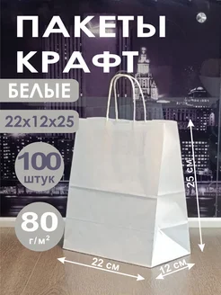 Бумажный пакет белый с ручками 220*120*250 100 шт