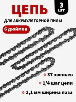 Цепь для аккумуляторной мини пилы 6 дюймов 37 звена 3 шт