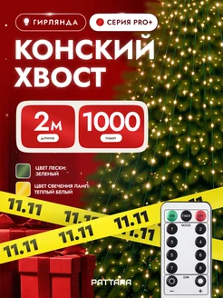 Гирлянда Конский хвост 2м 1000 л на елку новогодняя желтый