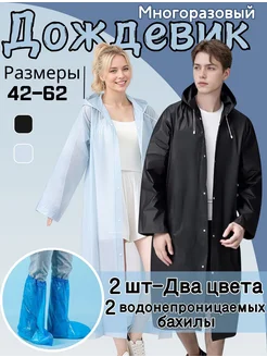 Дождевик плащ с капюшоном непромокаемый комплект 2 шт