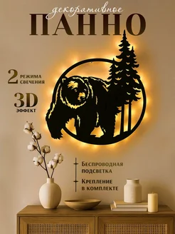 Панно на стену "Мотоциклист" с подсветкой из дерева