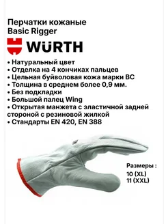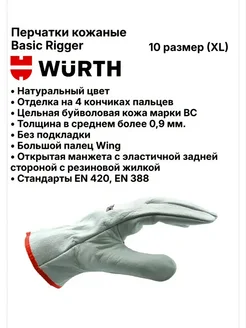 Перчатки кожаные защитные рабочие Basic Rigger Вюрт 10 р-р