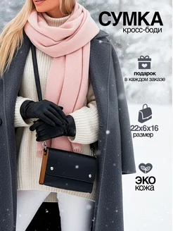 Сумка женская через плечо кросс боди с вставками из дерева