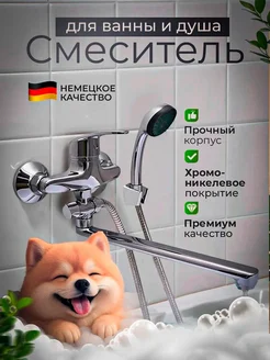 Смеситель для ванны с длинным изливом, душем, и лейкой