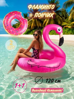 Круг надувной для плавания фламинго-120 см и пончик-90 см