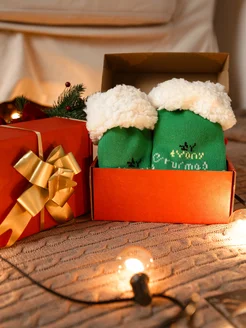 Новогодние носки пушистые подарочная упаковка