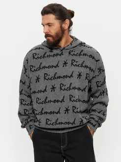 Джемпер с капюшоном серый трикотажный с надписями оригинал