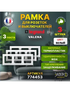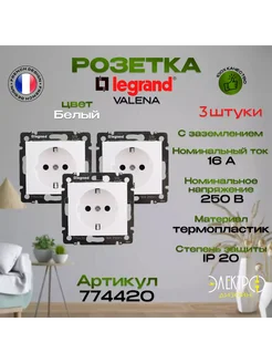 Розетка с заземлением 774420 Valena Белая - 3шт
