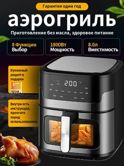 Аэрогриль 8 л нержавеющая сталь с решеткой и чашей с окном