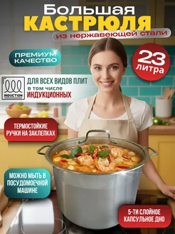 Кастрюля большая 23 литра из нержавеющей стали с крышкой
