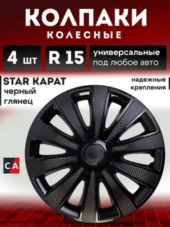 Колпаки колесные КАРАТ Черный Глянец R15 комплект 4 шт