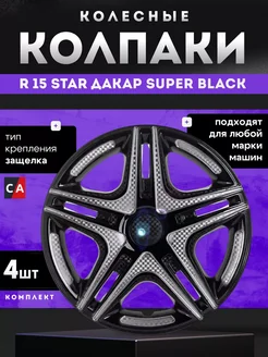 Колпаки колесные R15 ДАКАР Super Black комплект 4 шт