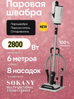 Мощная Паровая швабра с насадками и Пароочиститель Sokany