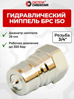 Гидравлическая БРС ниппель (29 мм) ISO резьба 3 4'' BSP