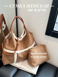 Сумка кожаная через плечо тоут средняя подарок на Новый год