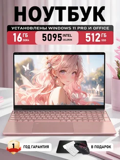 Ноутбук розовый 15 6" N5095 16ГБ+512ГБ для работы и учебы