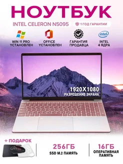 Ноутбук розовый 15 6" N5095 16ГБ+256ГБ для работы и учебы