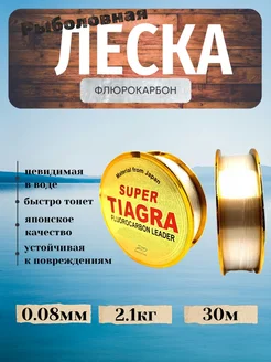 Леска рыболовная флюрокарбоновая для поводков 0,08мм 30м