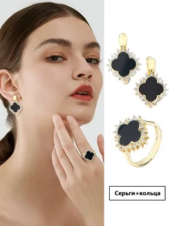 Сочетание серег и кольца с черным клевером