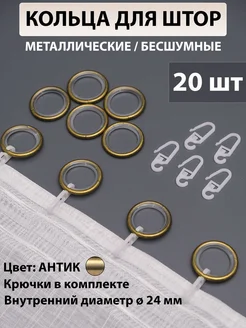 Кольца для карниза 24 мм бесшумные (20 шт ) Антик