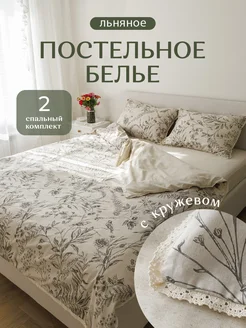 Льняное постельное белье с кружевом