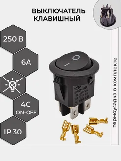 Выключатель клавишный круглый 250V 6А (4с) ON-OFF