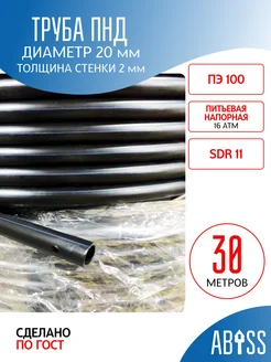 Труба ПНД 20х2 мм 30 м, напорная для питьевой воды, скважин