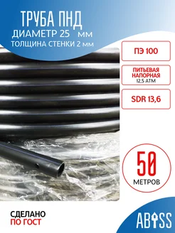 Труба ПНД 25х2 мм 50 м, напорная для питьевой воды, скважин