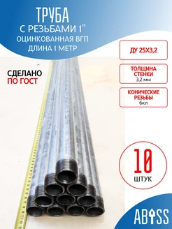 Труба оцинкованная ВГП 25х3 2 мм 10 шт по 1 м резьба 1"