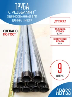 Труба оцинкованная ВГП 25х3 2 мм 9 шт по 1 м резьба 1"
