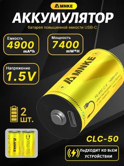 Аккумулятор C газ колонки (2шт) Li-Ion USB-C быстрая заряда