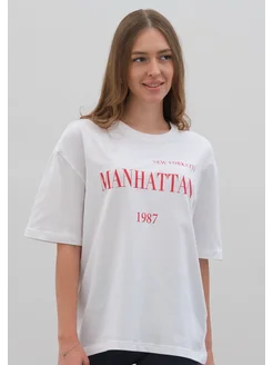 Футболка оверсайз из хлопка с принтом MANHATTAN