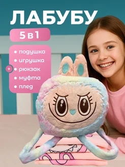 Плед с игрушкой LABUBU 5 в 1 подушка рюкзак муфта