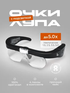 Бинокулярные увеличительные очки лупа с подсветкой 4 насадки