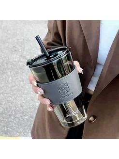 Стеклянный стакан с трубочкой и крышкой 450 мл