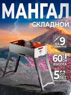 Мангал складной высокий на 9 шампуров, многоразовый