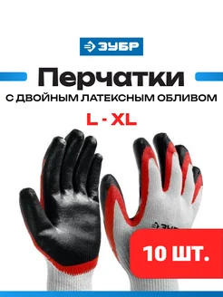Перчатки рабочие строительные 10 пар х2 защита, L-XL