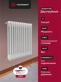Трубчатый радиатор обогрев 9 кв.м. Двухтрубный 12 секций