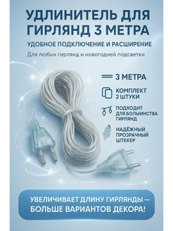 Удлинитель для гирлянд 3 м комплект 2 шт прозрачный